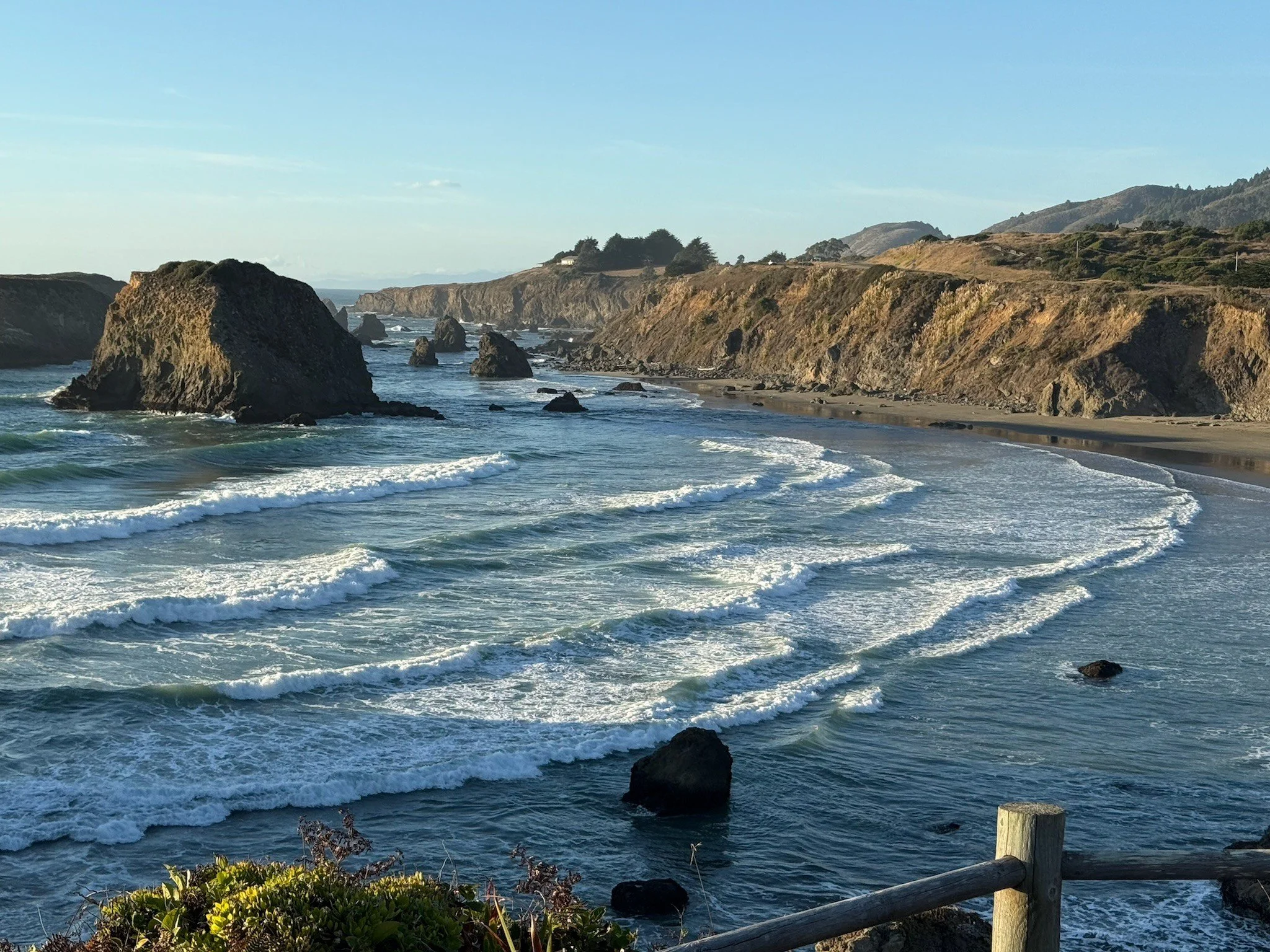 Located on the Mendocino coast just 15 minutes north of Ft. Bragg, the grounds at Casa Marea offer panoramic views of the blue Pacific and its dramatic rocky coastline.